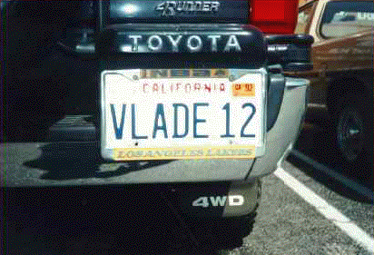 - Vlade and Plates (46K) - Thor Tandberg and girlfriend with Vlade at Laker Game with their license plates VLADE 12 and 12 DIVAC